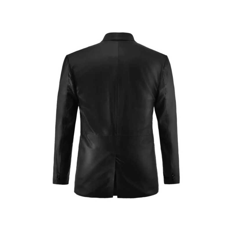 Men’s Black Lambskin Leather Blazer with Two-Button Closure