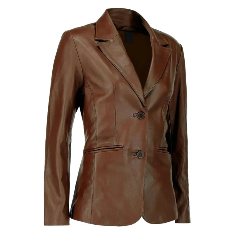 Women’s Dark Brown Lambskin Leather Blazer with Two-Button Closure